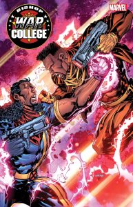 NEW FUTURE... SAME PROBLEMS! When the two Bishops arrive at the Tucker Institute to search for Tempo, they find the facility under attack by the Human Liberation Front - an anti-mutant extremist group made up of this alternate future Earth's versions of MOIRA MacTAGGERT, FEILONG, TONY STARK and SIMON TRASK. When the fight hits a critical point, a familiar face comes to the Bishop's aid. Meanwhile, back on Earth-616, Armor, Surge, Cam Long, Aura Charles and Amass are embroiled in battle against Orchis and the Struckers. Blood will be shed and truths will be revealed in this penultimate issue of BISHOP: WAR COLLEGE! Rated T+